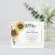 Letra de girassol Eucalyptus Floral Chá de panela. Apresentando um belo buquê floral rústico, estrutura geométrica de efeito ouro, com a moderna tipografia simples. Adicione seu endereço na parte traseira ou exclua o texto do marcador de posição se você quiser enviar um envelope DICA: Cartões de suíte de casamento correspondentes, como RSVP, programas de casamento, banners, tapeçarias, etiquetas de presentes, placas e outros guardas de casamento e gangues estão disponíveis na coleção abaixo com este design.