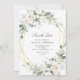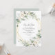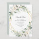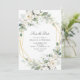 tema de casamento verde com folhagem de eucalipto, flores brancas de aquarela e uma moldura de ouro. O texto e as cores podem ser editados.