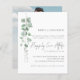 Um valor para o alternativo do ORÇAMENTO em tamanho menor de 4,5 x 5,6" de semirbrilho de 110 lbs, que é de espessura semelhante a um cartão postal (no entanto, não é adequado para uso como cartão postal). POR FAVOR, OBSERVE QUE HÁ UM convite por folha. Bote Eucalyptus De Foto Feliz Para Sempre Após O Convite de festas. Para a festa de comemoração depois do seu casamento particular. Estilo botânico minimalista. Um script manuscrito para Felizmente Depois e o resto do texto que você pode personalizar facilmente. Um galho elegante de folhas de aquarela eucalipto corre pelo lado esquerdo. Adicione sua foto favorita do dia do seu casamento nas costas.