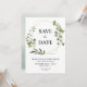 Cumprimente o seu clássico evento de casamento com este casamento geométrico de eucalipto. O design apresenta uma imagem geométrica dourada que enfeita folhas verdes de eucalipto.