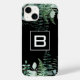 Fundo preto com verde eucalipto e samambaias. Personalize e adicione seu monograma inicial, letra.