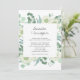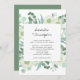 Este elegante convite de casamento apresenta uma espessa fronteira de verde-luxuoso, eucalipto e flores. O design é acentuado com texto de estilo manuscrito para os nomes da noiva e do noivo.