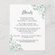 Projetado para coordenar com a nossa coleção de casamento Geométrica Eucalyptus Greenery, este cartão de informações convidado personalizável apresenta a cor d'água e a folhagem de eucalipto. Para fazer alterações avançadas, vá para a opção "Clique para personalizar mais" em Personalizar este modelo.