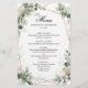 O cardápio elegante e moderno de primavera / Meia-Verão apresenta um buquê de folhas verdes e limpas de cor aquosa / folhas botânicas / eucalipto e estrutura geométrica dourada. Por favor, encontre mais designs e variações na minha loja. E fique à vontade para me contactar para mais personalizações ou itens correspondentes.