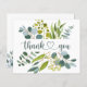 Obrigado pela sua cartão de visita. Este design apresenta uma camada de aquarela com eucalipto verde e galhos verdes. O texto "Obrigado" está escrito no estilo caligrafia. Personalize com seu próprio texto. Você também pode mudar a fonte, a cor e o tamanho.