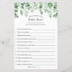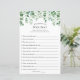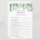 Quem conhece melhor a noiva? Cartão de jogo de chá de panela com uma cascata de cor d'água de verde e borrão florais.