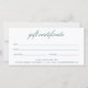 Elegante certificado botânico de presente que apresenta "Um presente para você" entre uma borda superior e inferior de folhas de eucalipto e verde com uma dica de azul, sobre uma lavagem a aquarela pastel. A parte traseira tem o formulário de certificado de presente junto com as informações de contato. Este design simples e rústico é excelente para florista.