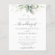 Belo convite para o casamento, com aquarela eucalipto e folhas de ouro.