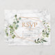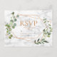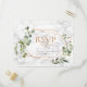 Moderna e moderna, este design RSVP de convite para casamento apresenta uma geometria falsa de cobre embelezada com a cor d'água eucalipto verde, sobre uma textura falsa de mármore branco, com "RSVP" em uma cor de cobre correspondente. Esta é a opção de não comer. Parte de um jogo de casamento. Convidados Elegantes de Direitos Autorais. Todos os direitos reservados.