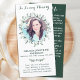 Simpatia moderna de Eucalyptus Cartões de oração funerários 4x8 favoritos. Este simples, mas elegante cartão de oração memorial apresenta um moderno design de eucalipto verde. Frente "In Loving Memory" Personalize este cartão de oração do funeral memorial com a foto, o nome e as datas de seus entes queridos e o sentimento. Poema 'Miss Me', que pode ser personalizado, por favor, contacte se quiser uma design com um poema específico que não. Este cartão de oração memorável será um guardião precioso, para os serviços funerários e para a celebração da vida. COPYRIGHT © 2020 Judy Burrows, Black Dog Art - Todos Os Direitos Reservados. Eucalyptus Memorial Prayer Cartão Funerário