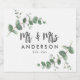 Orçamento belo e delicado casamento ou aniversário de folhagem de eucalipto. Sr. e Sra. personalizaram a design do rótulo de vinho. Coleção moderna e elegante sobre a tendência verde-sábio, preto, azul-marinho e branco-na moda, da rústica contemporânea.