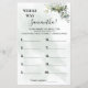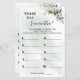 Onde ela estava? Versão em inglês e espanhol incluída (frente e verso). Adicione Bride a ser Name no modelo para as versões em inglês e espanhol. Para obter mais personalização (alterar texto, adicionar ou excluir número de fotos, cor da fonte, estilo da fonte ), clique em personalizar, role para baixo e clique no link "clicar para personalizar ainda mais". HOW TO PLAY: exiba fotos da noiva para estar em diferentes locais e numere-as. Os convidados anotam o palpite de cada foto e a pessoa com as respostas mais corretas ganha!