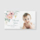 Foto De Bebê Obrigado Batismo/Cartão De Natal. Este design apresenta uma ilustração da folhagem de eucalipto, pénia e flores de anêmona em estilo aquarela. No topo há uma imagem de uma Cruz.