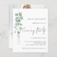 Orçamento Eucalyptus Photo Overlay Código QR Convite de festas Noite de Casamento. Um valor para o alternativo do ORÇAMENTO em tamanho menor de 4,5 x 5,6" de semirbrilho de 110 lbs, que é de espessura semelhante a um cartão postal (no entanto, não é adequado para uso como cartão postal). POR FAVOR, OBSERVE QUE HÁ UM convite por folha. Um estilo botânico minimalista para convidar seus convidados noturnos. Um roteiro manuscrito para o Partido da Noite e o resto do texto que você pode personalizar facilmente. Substitua a imagem de amostra no verso pela sua. Um galho elegante de folhas de aquarela eucalipto corre pelo lado esquerdo na frente.