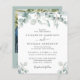 Convite de casamento multifuncional, acessível ao orçamento, com aquarelas de verde sage eucalipto verde verde verde, na moda e tipografia de cinza mole. No verso, adicione sua foto e insira o endereço do site de casamento para criar um código QR para seus convidados digitalizarem para RSVP on-line e obter detalhes adicionais de casamento, como instruções e acomodações.