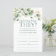 Esta linda e moderna aquarela eucalipto com ouro Quantos Anos Eles Tinham? A folha de chá de panela é perfeita para qualquer chá. Este jogo fácil e divertido traz muitas risadas a qualquer chá de panela! Peça a familiares e amigos que lhe enviem fotos da noiva e do noivo em todas as idades e que as façam imprimir. Numerá-los e colocá-los perto destas folhas de jogo. Basta dar uma folha a cada convidado (não se esqueça das canetas) e deixar a competição começar! Ficará surpreso com quantas pessoas conhecem realmente a idade da noiva e do noivo. Em segundos você pode ver como sua folha de jogo ficará. Basta selecionar Personalizar este Modelo e digitar os nomes da noiva e do noivo.