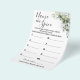 Eucalyptus Chame esse jogo de Chá de panela de especiarias. Mude o texto para design. Para personalização adicional (cor da fonte, estilo da fonte ), clique em personalizar, role para baixo e clique no link "clique para personalizar mais". Como jogar: tenham dez especiarias diferentes, os hóspedes irão anotar seu palpite sobre cada especiaria, cheirando e olhando apenas, a pessoa com as respostas mais corretas ganha!