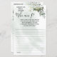 Quem sou eu chá de panela o jogo de versão em inglês e espanhol incluído (frente e verso). Mude Bride para Name (Nome) no modelo para as versões em inglês e espanhol. Para obter mais personalização (alterar outro texto, cor da fonte, estilo da fonte ), clique em personalizar, role para baixo e clique no link "clique para personalizar mais". Como jogar: os convidados anotam uma memória pessoal que têm com a futura noiva. A Noiva lerá cada carta e se ela não se lembrar do convidado; aquele convidado ganha um prêmio!