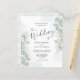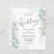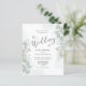 Convite de casamento russo do Eucalyptus. Apresentando folhagem delicada em verde-sábio e azul poeirento sobre fundo branco, todo design original pintado em aquarela. Preencha com tipografia de estilo escrita à mão e edite texto fácil.
