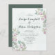 Este design verde de eucalipto faz o convite perfeito para o casamento. Um design original com eucalipto macio em verde e borrifado empoeirado contra uma gama de folhagem em aquarela. Esta ilustração é colocada contra um delicado fundo de textura aquosa que dá a esta criação uma sensação ética e romântica. Fácil de personalizar com seus próprios detalhes.