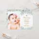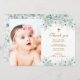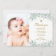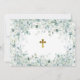 Flores Brancas e Dourado convite de batismo para bebê impressa personalizada e acessível. Este design bonito tem uma folha verde de cor d'água com texto de ouro. O verso tem uma cruz dourada com flores de aquarela ou usa o espaço para adicionar texto e fotos adicionais. Clique em Personalizar para escolher qualquer cor de fundo e editar as fontes e cores do texto.