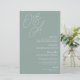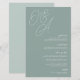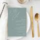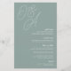 Um belo cartão de cardápio de casamento baseado em tipografia, que apresenta suas iniciais em letras de script sobredimensionadas no topo, em tons em tons para um efeito de marca d'água. Personalize com seus itens de menu embaixo, alinhados à direita. A nossa via colorida Eucalyptus é uma mistura elegante de verdes empoeirados, com uma inscrição verde-clara e branca num fundo verde-sábio.