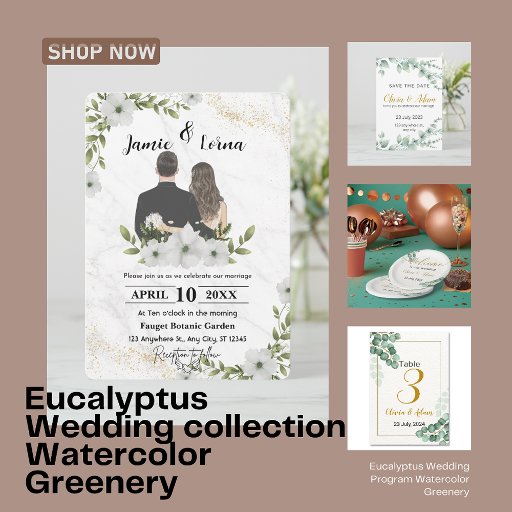 O "Eucalyptus Wedding Poster Watercolor Greenery" é um belo e elegante poster que apresenta um design de aquarela pintado à mão de folhas de eucalipto e verde. Esta poster é perfeita para adicionar um toque de beleza natural à sua decoração de casamento. Você pode personalizá-lo com seu próprio nome.