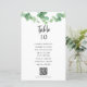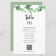 Elegant and chic eucalyptus sage green and gray wedding table number card with guest names seating chart and custom QR code for wedding menu