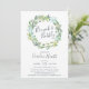 Os convites de brunch botânica Elegante apresentam uma coroa de folhas e folhagem de eucalipto com aquarela, cercando "brunch & bubble" em letra chic manuscrita. Personalize com os detalhes do seu chá de panela.