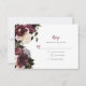 Bem-vindo à coleção de euforia. Bouquets laterais luxuriantes de flores em tons de burgundy, rosa e branco, compostos por crisântemos, hortênsias, rosas, verbena, dálias e gardenias. Rústico boêmio, mas muito elegante. As caixas de modelo de texto são fáceis de personalizar com suas próprias informações. Certifique-se de alterar a data de resposta! ***NOTA*** Se precisar de ajuda com este convite ou tiver solicitações personalizadas que precisem da minha ajuda, não coloque este produto no carrinho. Em vez disso, envie um e-mail com sua solicitação para shutterbug600@yahoo.com. Sou uma designer independente que lista meu trabalho para venda através do Zazzle; no entanto, eles cuidam de todos os aspectos da fabricação e envio dos referidos designs. Não tenho acesso à sua conta e não posso ver o que você fez. As respostas às suas perguntas podem ser encontradas em https://www.zazzle.com/about/ask Clique no link para que as perguntas sobre seu pedido ou envio sejam respondidas pelos membros da equipe de Atendimento ao Cliente do Zazzle.
