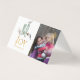 Cartão de cumprimentos de temporada de Natal com aquarela rústica de pinheiro e abeto com flocos de neve em brilho dourado sobrepostos personalizáveis com sua própria foto.