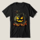 This chilling Halloween design showcases a sinister, glowing jack-o'-lantern with sharp, angular features, crowned by a serpentine snake that curls menacingly from its stem. The snake’s glowing eyes and forked tongue add a venomous intensity, while its antler-like horns give it a mythical, monstrous flair. Beneath the main pumpkin sit three smaller, mischievously carved jack-o'-lanterns surrounded by fallen leaves, completing a perfectly eerie autumn scene.