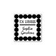 Um design de carimbo Ex Libris com um quadro exterior na moda, constituído por pontos circulares em negrito.
