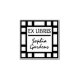 Um design de carimbo Ex Libris com um quadro exterior na moda constituído por quadrados e retângulos negros.
