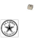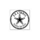 Um design de carimbo de borracha Ex Libris redondo com uma borda ousada e pontilhada com um motivo de estrela.