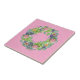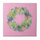 Traga a natureza para a sua casa com este azulejo cerâmico enfeitado com uma coroa exuberante feita de suculentos, flores cor-de-rosa, pincel e pêssego e toques de folhagem roxa.