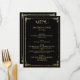 Excelente de folhas douradas Menu de casamento Gatsby Art Deco com texto personalizável impresso em fundo preto