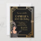 Convite de aniversário de arte de 1920 preto e ouro. Veja nossos cartões de resposta e recepção correspondentes.