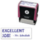 Este design de carimbo encorajador apresenta a mensagem "EXCELENTE TRABALHO!" e o nome de um professor personalizado. Pode ser usado por um professor ou educador ao formando o trabalho estudantil, para reconhecer que um aluno fez um trabalho excepcional.