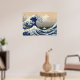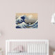 Katsushika Hokusai é uma das mais famosas artistas do Japão e esse trabalho é chamado de Onda Excelente de Kanagawa. Vocês podem ver o Monte Fuji ao fundo.