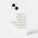 O cobrir para portáteis iPhone 14 apresenta o texto "Coisas de Excelente nunca vêm de zonas de conforto" em uma fonte ousada e multicolorida. O fundo é um vibrante gradiente de azul e verde, com um sutil padrão de ondas e bolhas. A design é atraente e inspiradora, e encoraja o usuário a sair de sua zona de conforto e perseguir seus sonhos.