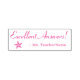Este design de carimbo divertido apresenta a mensagem motivacional "Respostas excelentes!" e o nome de um educador personalizado. Ele também apresenta uma forma decorativa de estrela. Ele poderia ser usado por um professor de escola, educador ou orientador ao marcar trabalhos, para indicar que o aluno fez bem.