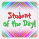 Este design empolgante, colorido e encorajador mostra a mensagem "Estudante do Dia!". Um adesivo como este pode ser usado para reconhecer um estudante que se saiu bem. [~Z0000317]