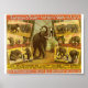 O maior show de Barnum e Baley na Terra, apresentando elefantes, uma série de novos e mais surpreendentes feitos pelo melhor treinado e maior grupo de elefantes performativos. Executando truques com facilidade, graça, precisão e inteligência dos seres humanos. Uma Exibição Maravilhosa de Inteligência Bruta e Razão, Positivamente, Como Representado. Strobridge Lithograph Co., Cincinnati & New York, 1898.