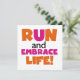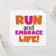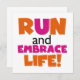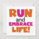 Se você gosta de correr, correr 5Ks, 10Ks, meia maratona, ou maratonas, você vai adorar este design de texto colorido em laranja e rosa quente que lê Run and Embrace Life! Corra e Abraça Camisas de Vida, capuzes, ímãs, botões, cartões, adesivos, correntes-chave e muitos outros itens para corredores que adoram um design brilhante e colorido!