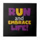 Se você gosta de correr, correr 5Ks, 10Ks, meia maratona, ou maratonas, você vai adorar este design de texto colorido em roxo e amarelo que lê Run and Embrace Life! Corra e Abraça Camisas de Vida, capuzes, ímãs, botões, cartões, adesivos, correntes-chave e muitos outros itens para corredores que adoram um design brilhante e colorido!