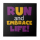 Se você gosta de correr, correr 5Ks, 10Ks, meia maratona, ou maratonas, você vai adorar este design de texto colorido em roxo e amarelo que lê Run and Embrace Life! Corra e Abraça Camisas de Vida, capuzes, ímãs, botões, cartões, adesivos, correntes-chave e muitos outros itens para corredores que adoram um design brilhante e colorido!