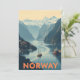 Celebrar as maravilhas naturais da Noruega com este cartão de viagem maravilhosamente desenhado. Mostrando fiordes cênicos, torcendo montanhas com capas de neve e charmosas vilas costeiras, esta carta captura o espírito aventureiro e sereno da Noruega. Perfeito para os entusiastas da viagem ou como uma saudação cuidadosa para os amantes da natureza.