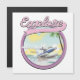 Explore o logotipo viagem com uma bela aeronave leve e palmeira.
