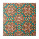 Seamless geometric pattern with intricate floral motifs in orange, teal, and beige tones, creating a vibrant, symmetrical, and harmonious design.